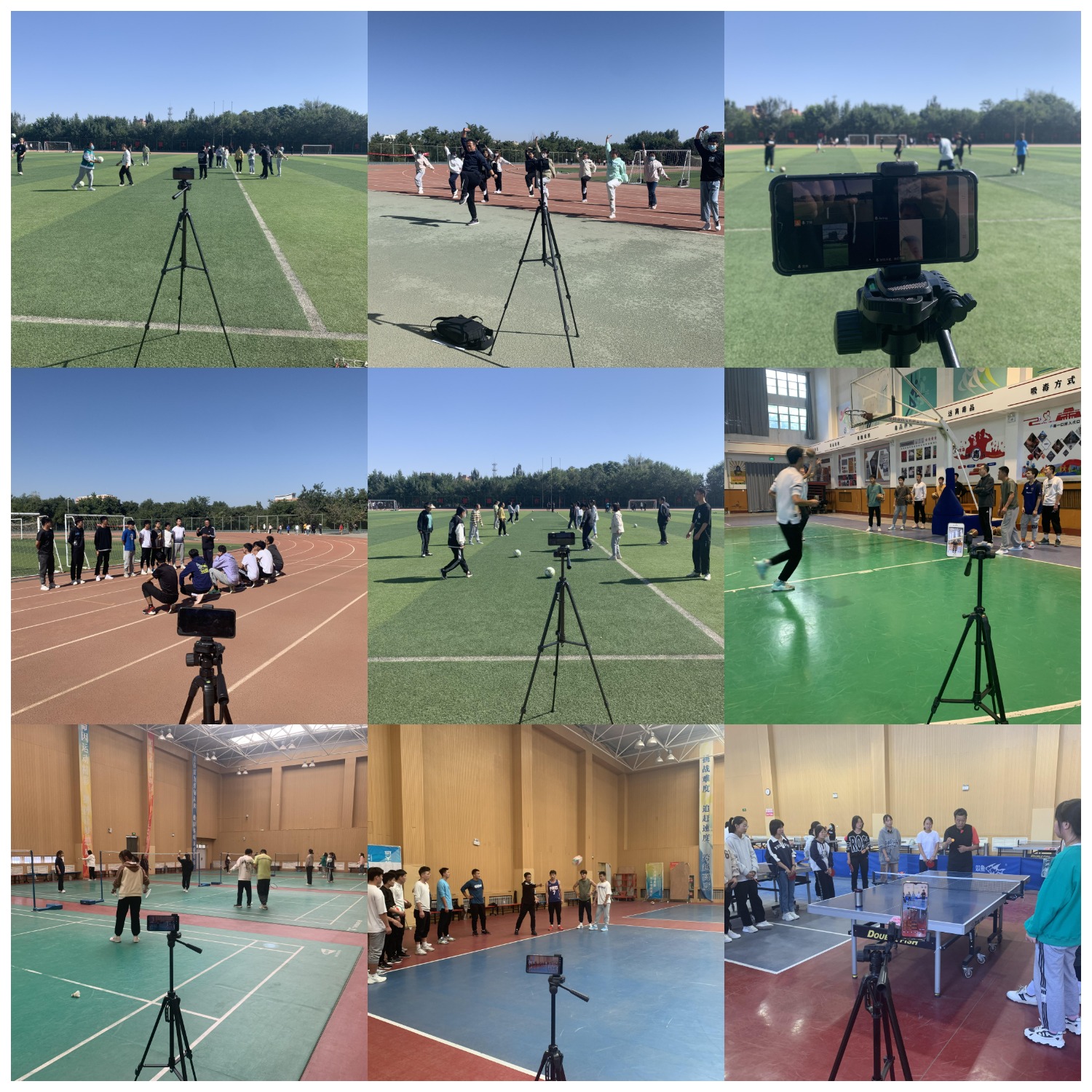 学校自10月3日实行闭环管理,10月4日开始线上、线下同步教学。与其他学科不同,体育技能课教学专项繁多,不同专项对场地、器材有着不同的要求,且在教学过程中,学生活动性、参与性较强,十分强调教师的示范作用。因疫情影响,面对近一半学生在校、另一半学生在家的实际情况,针对体育技能课教学的特殊性,如何实现体育技能课线上、线下同步教学和教学效果的实质等效,对体育技能课教学提出一定挑战。太阳成集团tyc7111cc主页经前期调研,于10月3日为教师购置一批手机架,并对教师进行了必要的使用培训,10月4日全部体育技能课实现了线上、线下同步教学,并且从第一天教学实践情况看,收到了良好的教学效果。