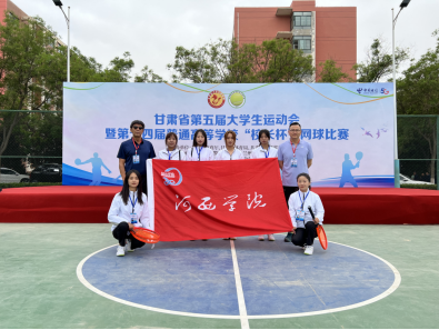 本次网球比赛是甘肃省第五届大学生运动会第一个比赛项目,我校共派出6名运动员参赛,领队、教练员分别为邓金、唐光旭老师。在比赛期间,我校运动员在赛场上顽强拼搏,勇于进取,取得了运动成绩与精神文明双丰收!体现出河院运动健儿风采!