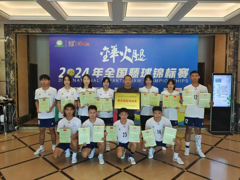 7月29日,2024年全国藤球锦标赛在浙江金华落幕,我校参赛代表队全体成员参加闭幕式。