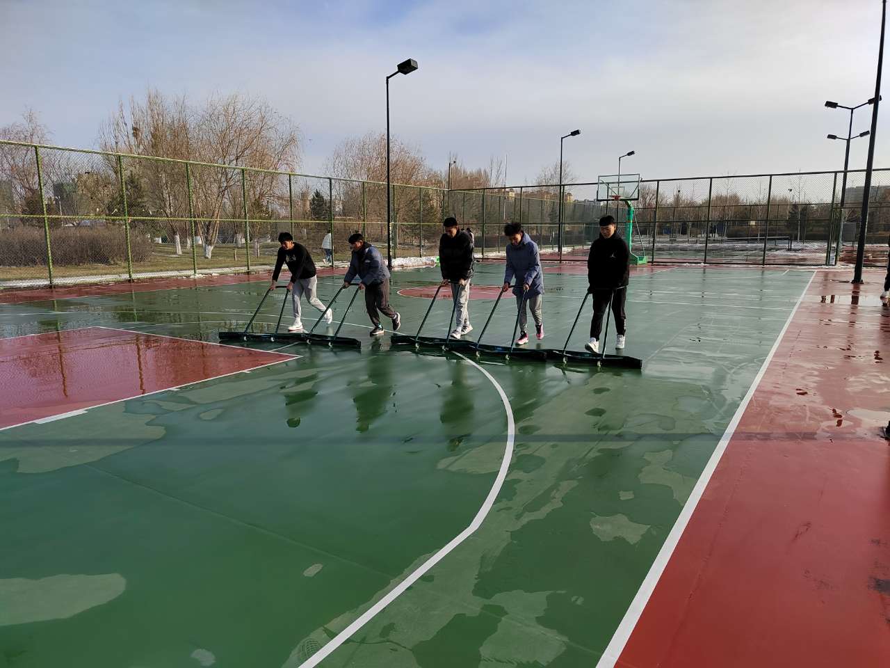 体院学子们所清扫的地区有塑胶操场 灯光球场 北区篮球场。
