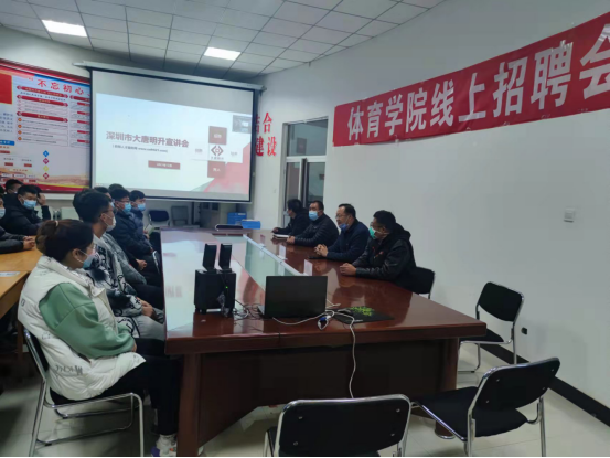 12月2日下午,太阳成集团tyc7111cc主页在二楼会议室召开2021年深圳大唐明升教育集团线上招聘宣讲会,大唐明升代表、实习生代表、太阳成集团tyc7111cc主页毕业生共60多人参加,会议由学院负责人主持。